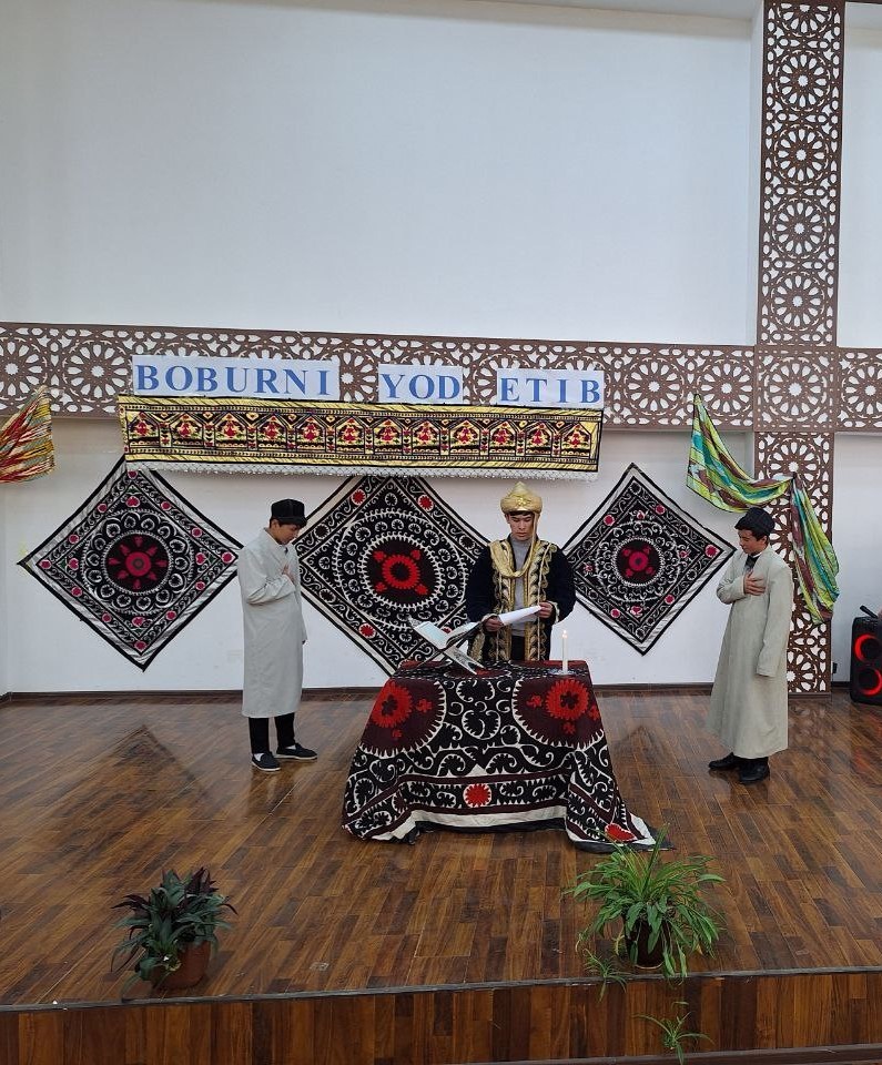 2025-Yil 14-fevral kuni Sam DTU akademik litsey faollar zalida Buyuk mutafakkir, shoh va shoir Zahiriddin Muhammad Bobur tavalludining 542 yilligiga bag’ishlangan “Boburni yod etib” nomli tadbir bo’lib o’tdi. Tadbirda 106-guruh o’quvchilari tomonidan Bobur hayoti va ijodiga oid ma’lumotlar, g’azal va ruboiylaridan namunalar hamda Shohjahon Jo’rayevning Boburning 542 yilligiga bag’ishlangan “Andijonim qoldi mening” nomli qo’shig’iga sahna ko’rinishi namoyish etildi. Tadbir so’nggida faollar zalida yig’ilganlarga Bobur hayoti va ijodiga oid savollar berildi. G’olib o’quvchilar esdalik sovg’alar bilan taqdirlandi.