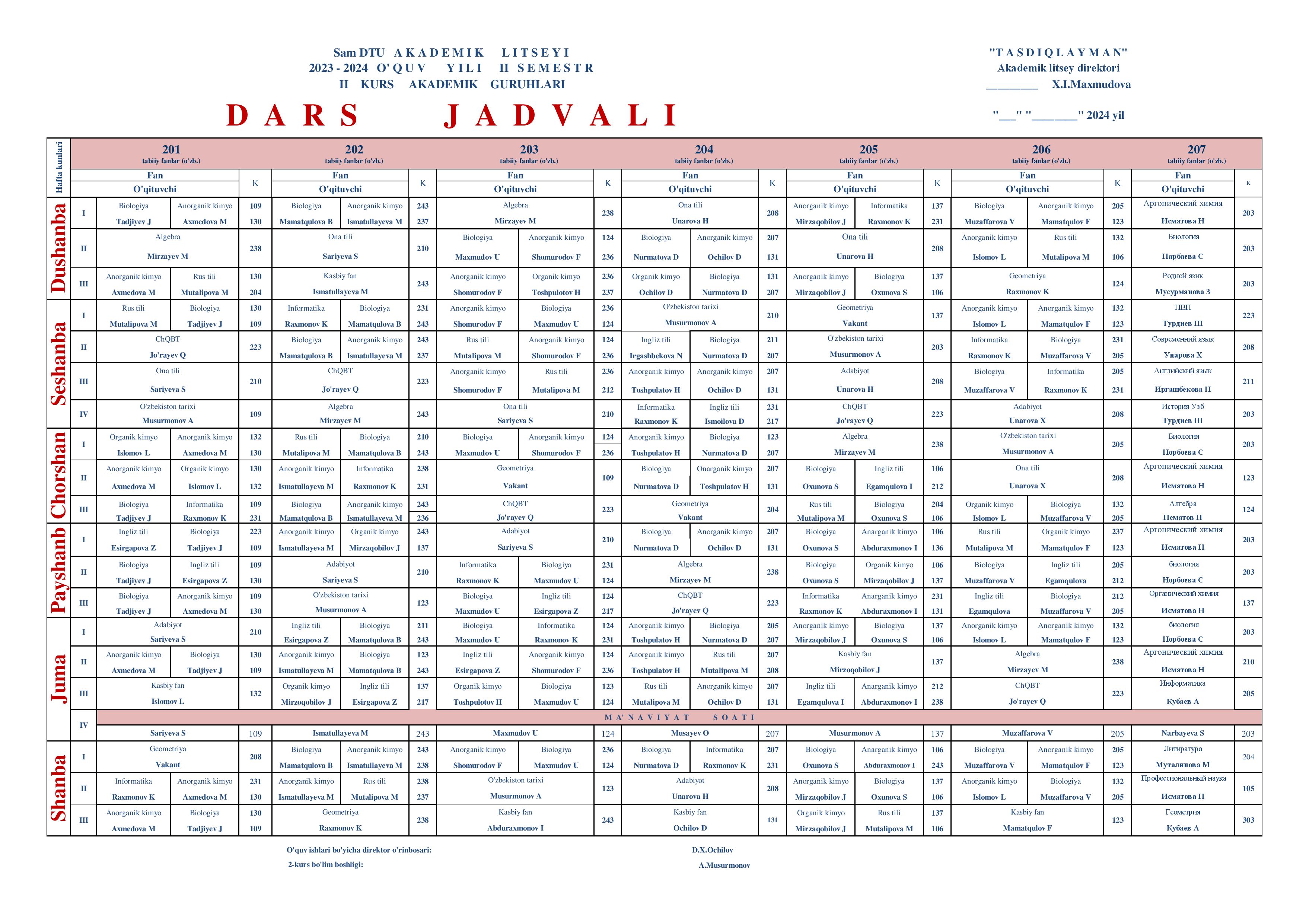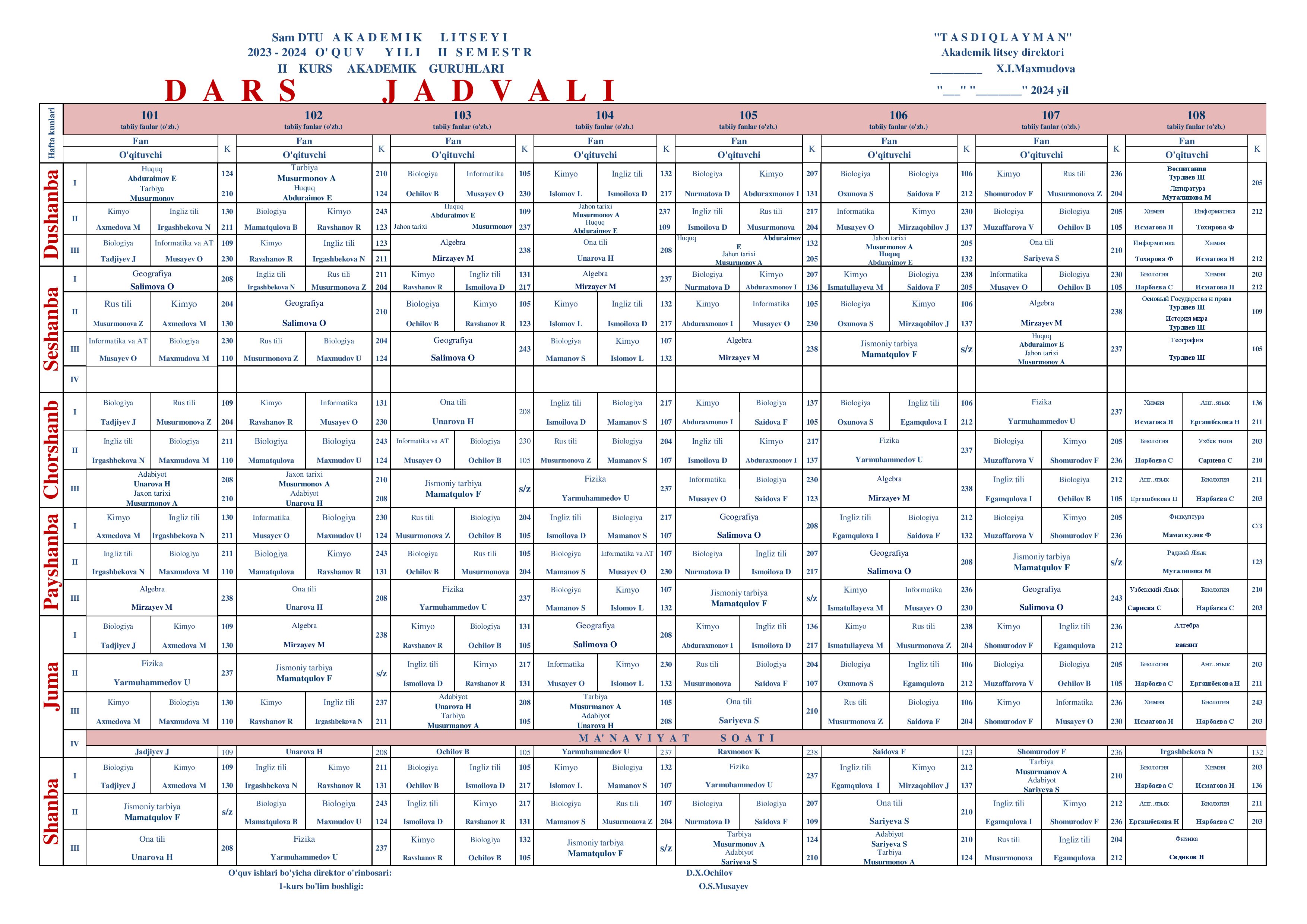 Samarqand davlat tibbiyot universiteti akademik litseyida birinchi hamda ikkinchi bosqich o'quvchilari uchun dars jadvali tasdiqlandi.
