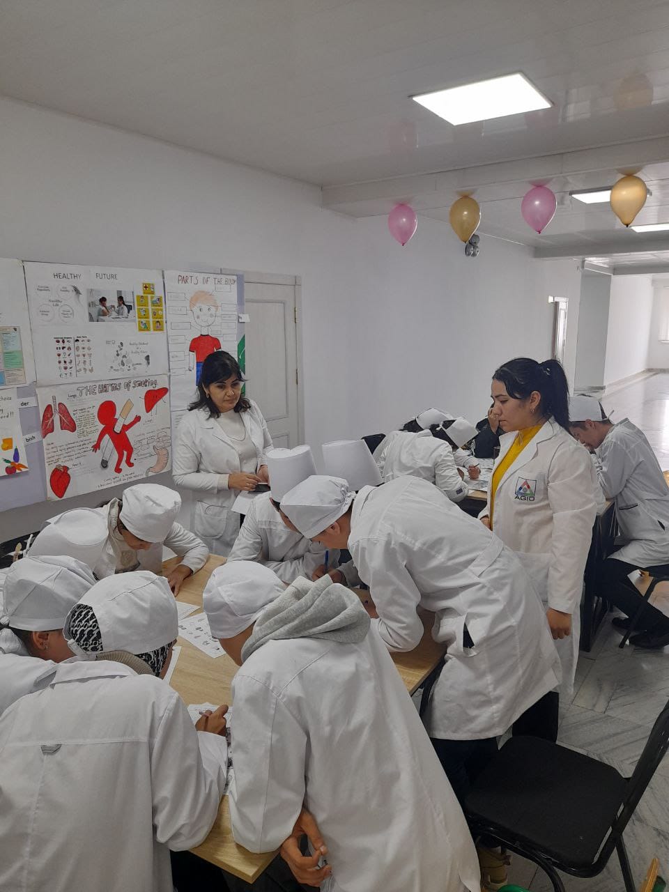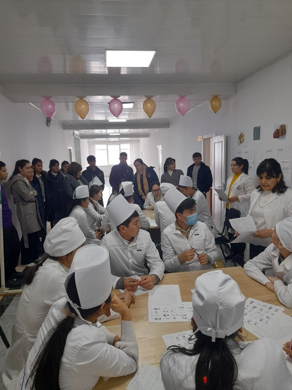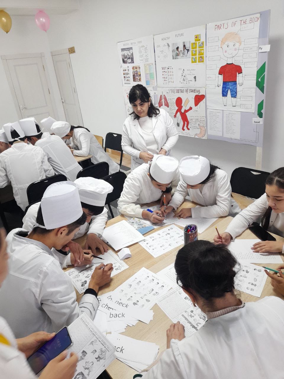 Eng: The competition"Healthy lifestyle " was held among the students of group 102, 107 and 108 by English teachers N.Irgashbekova, D.Ismoilova, I.Egamqulova in the academic lyceum of Samarkand State Medical University. The competition inspired our students ' interest not only towards their future profession, but also towards learning medicine through English language. The most active participants will be awarded by certificates of honor by the director of the academic lyceum.