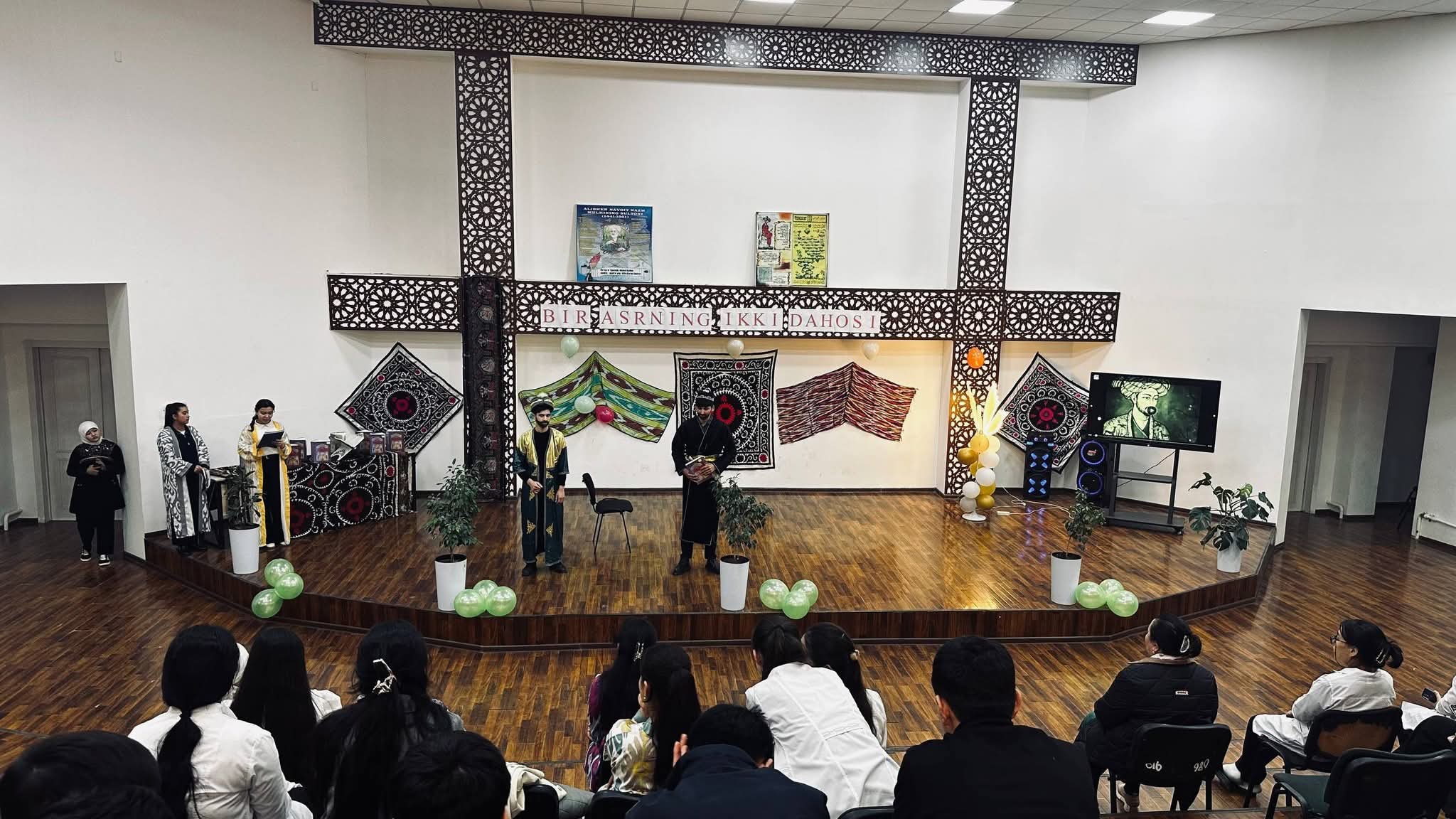 SamDTU akademik litseyda "Bir asrning ikki dahosi" mavzusida adabiy-ma'rifiy kecha o'tkazildi. Tadbirda buyuk shoir va mutafakkir, atoqli davlat va jamoat arbobi Аlisher Navoiy hamda shoh va shoir Zahiriddin Muhammad Boburning bebaho ijodiy-ilmiy merosi nafaqat xalqimiz, balki jahon adabiyoti tarixida, milliy madaniyatimiz va adabiy-estetik tafakkurimiz rivojida alohida oʼrin tutganligi haqida ma'lumot berildi. Ikki buyuk siymo sheʼriy va nasriy asarlarida yuksak umuminsoniy gʼoyalarni, ona tilimizning beqiyos soʼz boyligi va cheksiz ifoda imkoniyatlarini butun jozibasi va latofati bilan namoyon etib, yer yuzidagi millionlab kitobxonlar qalbidan munosib va mustahkam oʼrin egallagan. Badiiy-adabiy kechada akademik litseyning 106-guruh o'quvchilari hamda sheriyatga orzumand talabalari faol ishtirok etishdi. Tadbir avvalida akademik litsey direktori b.f.n dots. Xurshida Irgashevna Navoiy va Bobur qoldirgan boy ijodiy merosni oʼrganish va targʼib qilish borasida amalga oshirilayotgan ishlar haqida toʼxtalib oʼtdi. Tadbirning badiiy qismida talabalar tomonidan shoirning “Navoiy va Guli monologi” hamda “Yodgor va Husayn Boyqaro” sahna ko'rinishlari namoyish etildi. Bundan tashqari, mahorat bilan ijro etilgan kuy-qo'shiqlar va raqslar barchaga a'lo kayfiyat bag'ishladi. Tadbirni oʼtkazishdan maqsad buyuk siymolar asarlarini chuqur oʼrganish, ularda ilgari surilgan umuminsoniy gʼoyalarni yoshlar orasida keng targʼib qilish, yoshlarda Vatanga muhabbat hissini shakllantirishdan iboratdir.