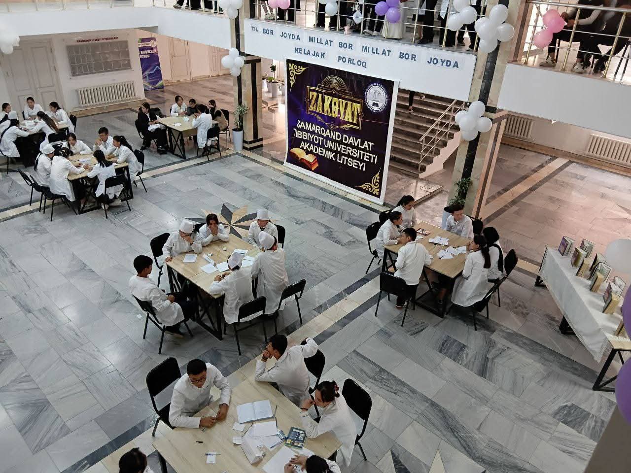 SamDTU akademik litseyida Samarqand viloyati hokimligining 2025 yil 2 oktabrdagi “O‘zbekiston Respublikasi Bosh vazirining 2025 yil 27 sentabrdagi “21-oktabr — O‘zbek tiliga davlat maqomi iberilgan kun" bayramini mamlakatimizda keng nishonlash chora-tadbirlari to‘g‘risida” 176-son majlis bayoni ijrosini ta’minlash to‘g‘risidagi 13-01/582-sonli chora-tadbirlar rejasining 12-bandi ijrosini ta’minlash maqsadida “21-oktabr — O‘zbek tiliga davlat maqomi berilgan kun" bayrami munosabati bilan “Zakovаt” intellektual tadbiri o‘tkazildi. Tadbir akademik litseyning I-bosqich o‘quvchilari o‘rtasida bo‘lib o‘tdi. G‘olib jamoalar diplom va esdalik sovg‘alar bilan taqdirlandilar.
